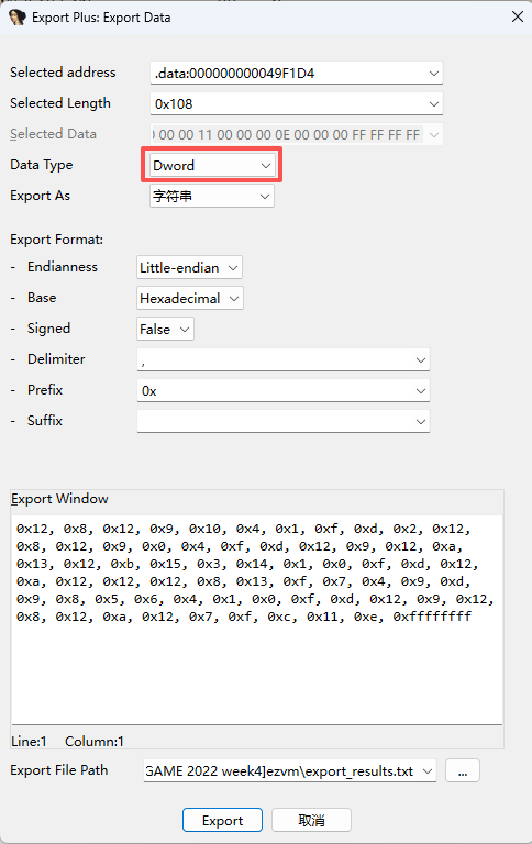 将这些数据导出,等下写脚本要用,一直到 FFFFFFFF 就是结束了