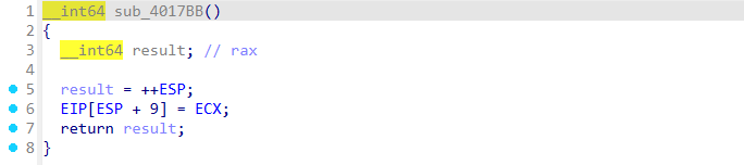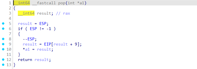 这里和上面一样也是关于 ESP 的栈操作,多了一个判断栈指针是否合法(>= 0)