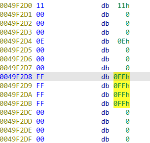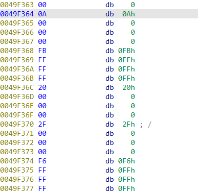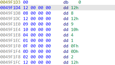 查看 49F1D4,看到刚好是一些数据开始的位置