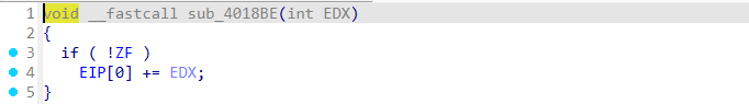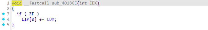 如果 ZF 为 0,EIP(opcode 指针) 加上 EDX 的值(指针偏移)