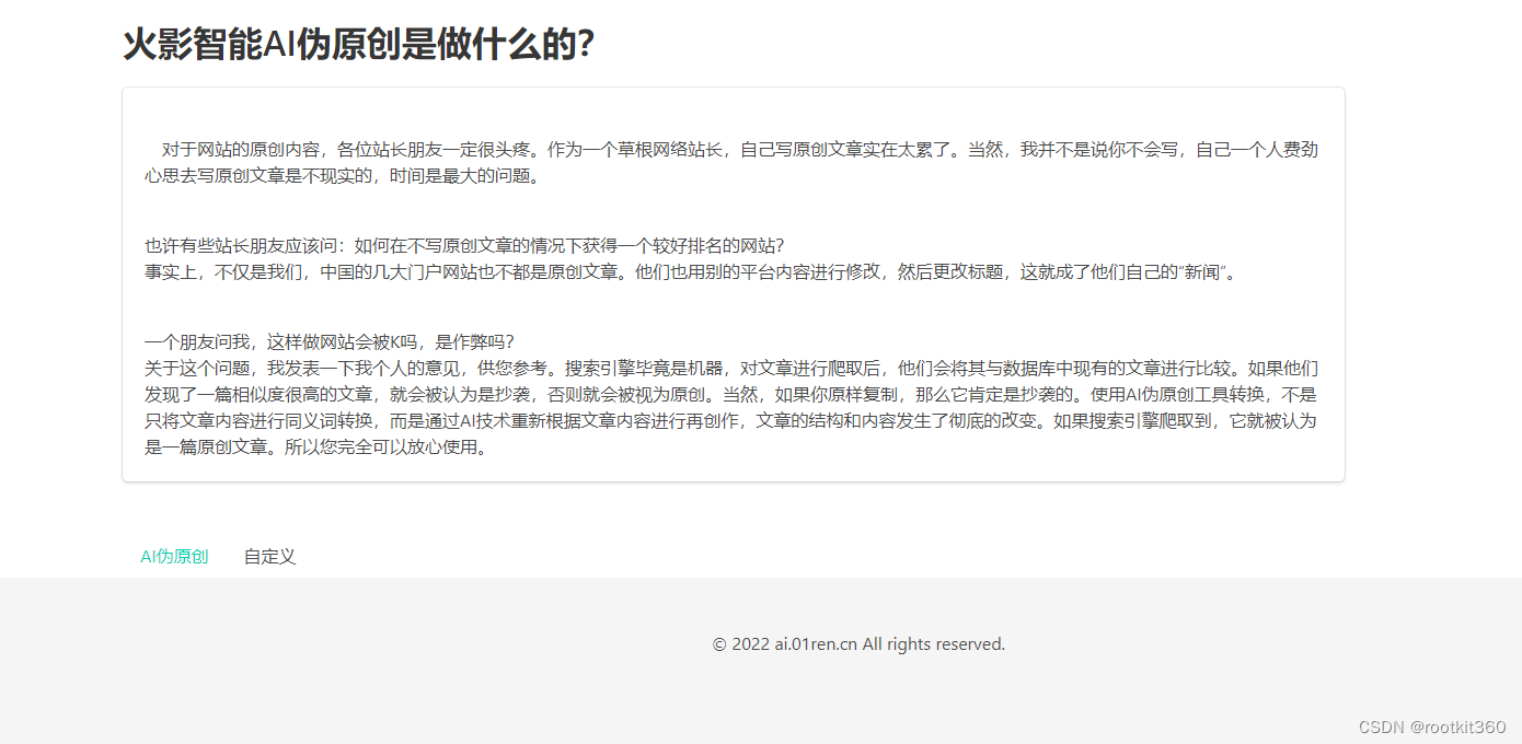 需要注意的是,无论选择哪种方法,都要保持高质量的内容并且遵循版权法规。火影智能AI文章伪原创