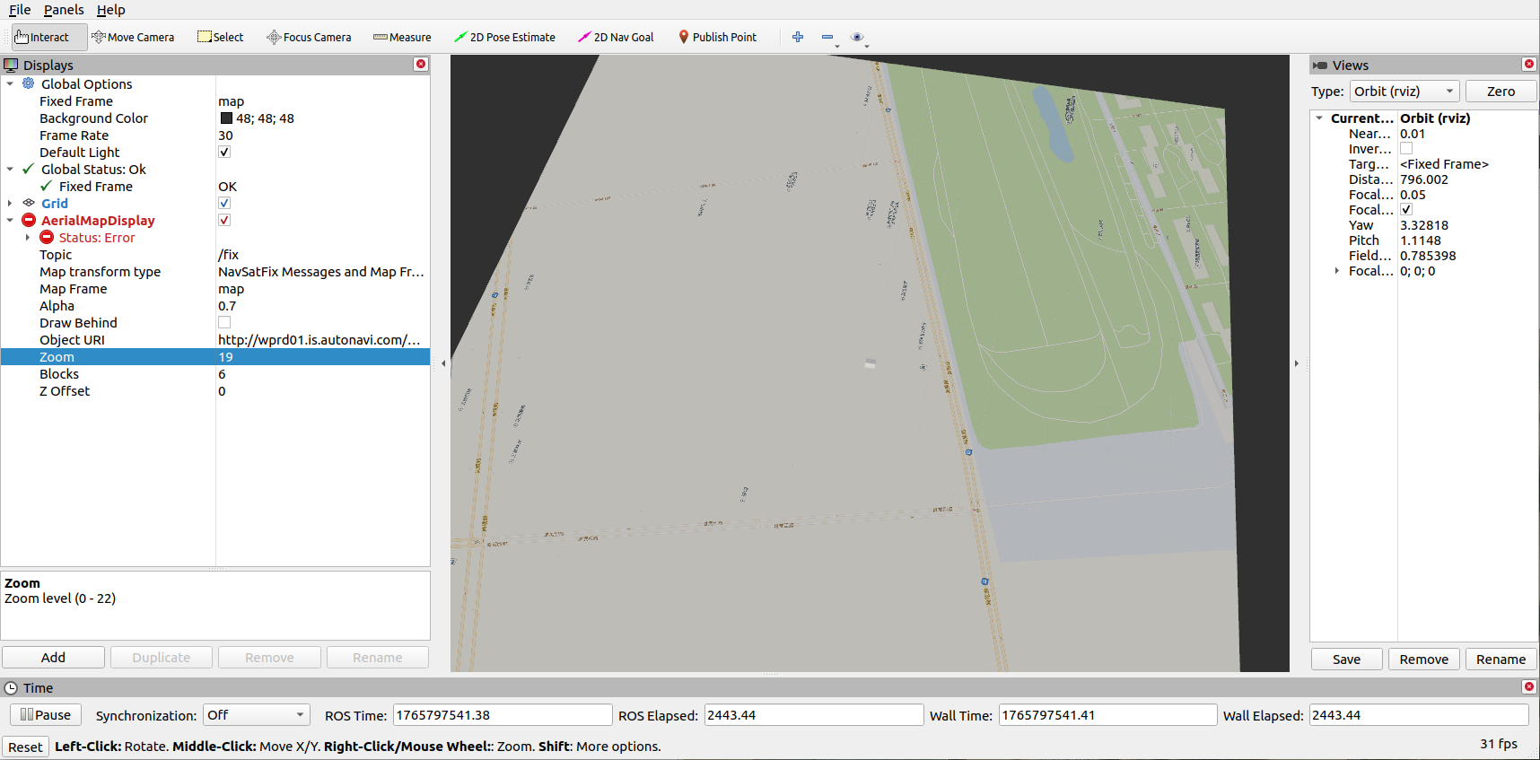 启动 RViz 后,点击 Add -> AerialMapDisplay。重点配置以下参数,否则地图不会显示: