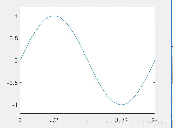 于是我使用了另外的方法:set(gca,'XTickLabel',{'0','\pi/2','\pi','3\pi/2','2\pi'});