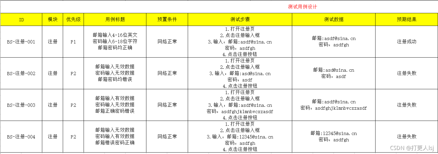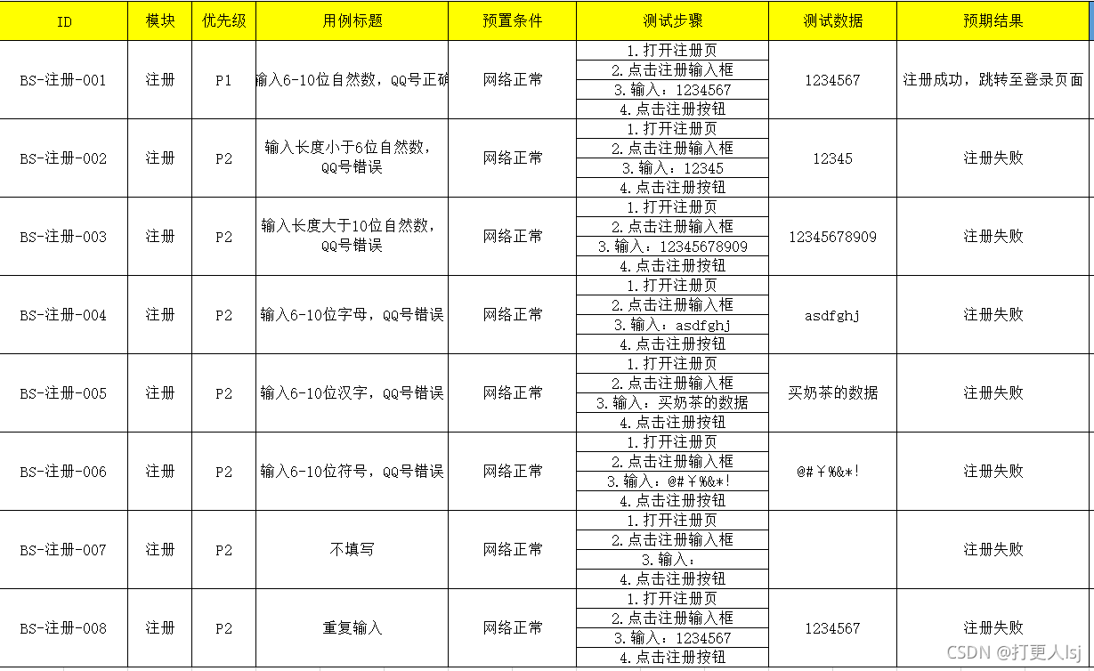 - 用例标题(验证谁在什么情况下,去做什么,最后结果是什么)
