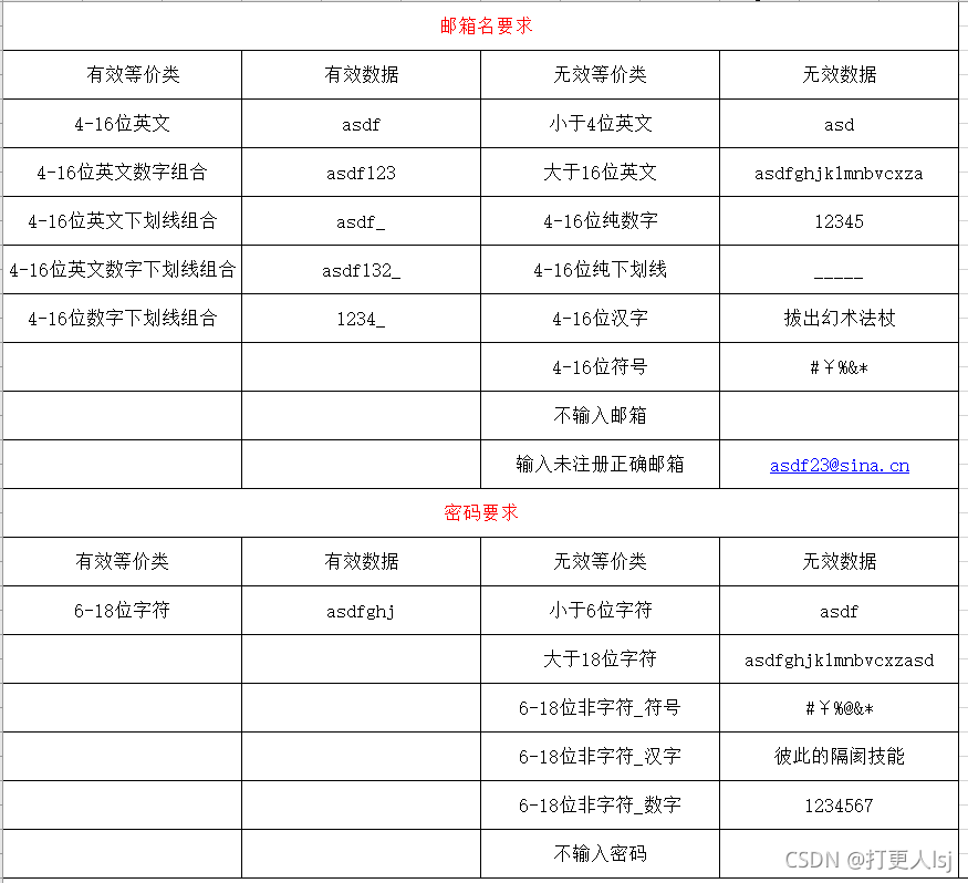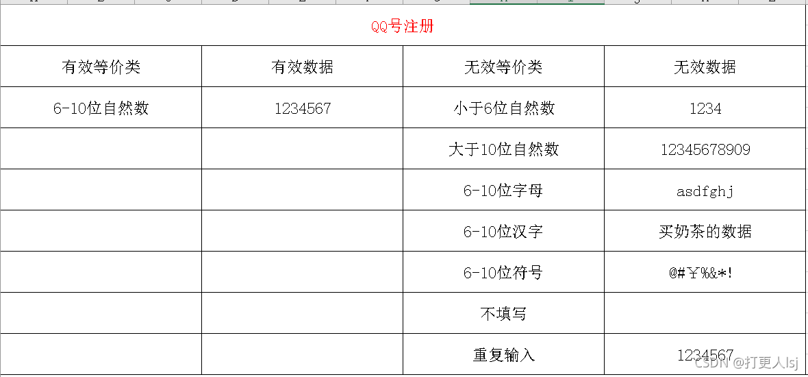 - 概念:把具有相同价值的一类放在一起,大大节省了测试的过程。——本质:找相同点分类