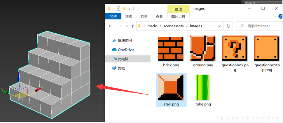 2.打开贴图文件夹,拖拽对应贴图到模型上