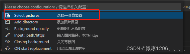 2.快捷键 Ctrl + Shift + p 打开首选项设置 并输入 background 打开 backgroundCover-start
