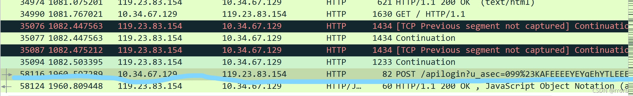 点击登录,提交账号密码信息的操作会被wireshark捕捉到。