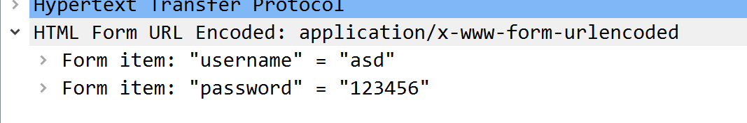 可以看到明文的账号密码,这意味着登录操作提交的信息通过明文传输,不仅可以自己捕获同样也可能被别人捕获,从而造成数据泄露。