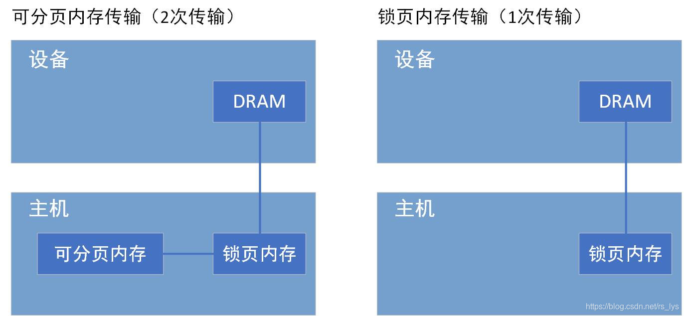 GPU知道锁页内存的物理地址,可以通过“直接内存访问(Direct Memory Access,DMA)”技术直接在主机和GPU之间复制数据,传输仅一次,效率更高。