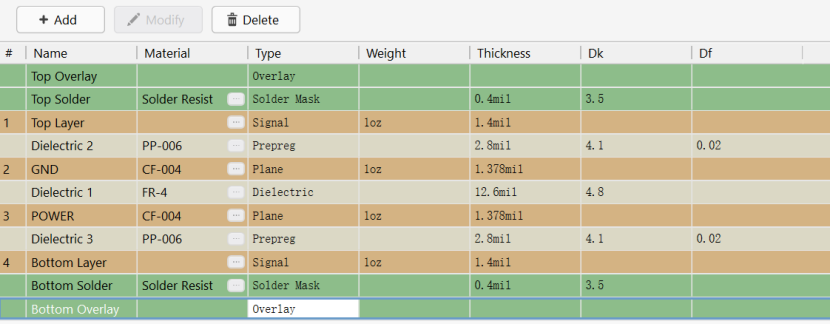 5. D+K,打开层叠管理器(四层板)