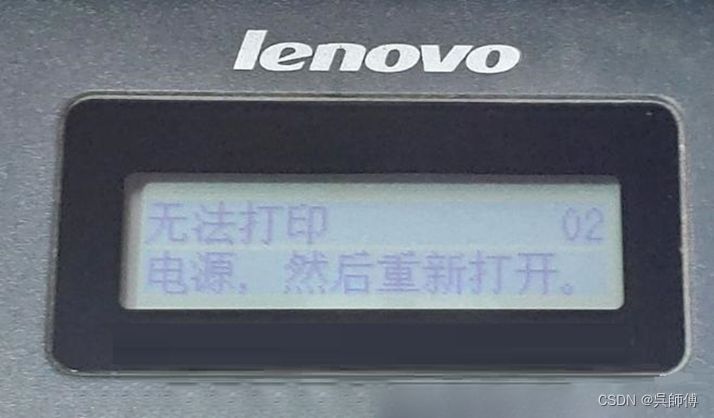 一台联想M7206黑白激光一体机开机以后报错无法打印02,然后打印机无任何动作、没反应了。