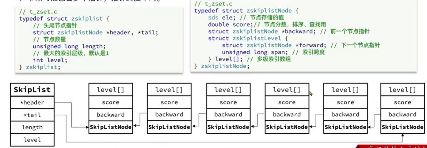 - backward:后退指针, 节点中用BW字样标记的后退指针 ,他指向当前节点的前一个节点。后退指针在程序从表尾向表头遍历时使用。