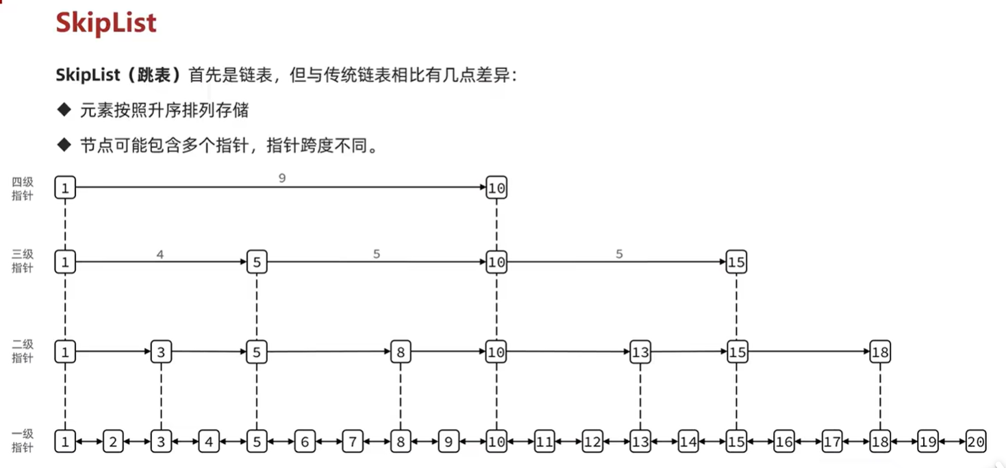 span=8(跳过2-8号共8个点) - 这是跳表提速的关键:不用逐一遍历!