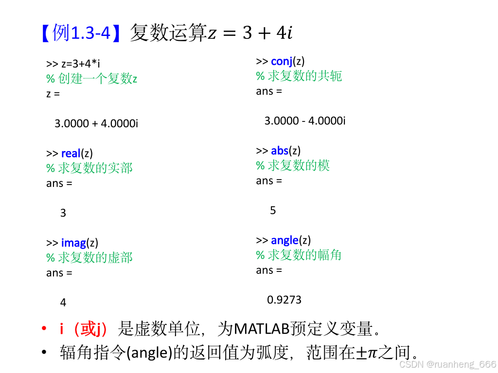 - 幅角指令angle的返回值为弧度,范围在±π之间