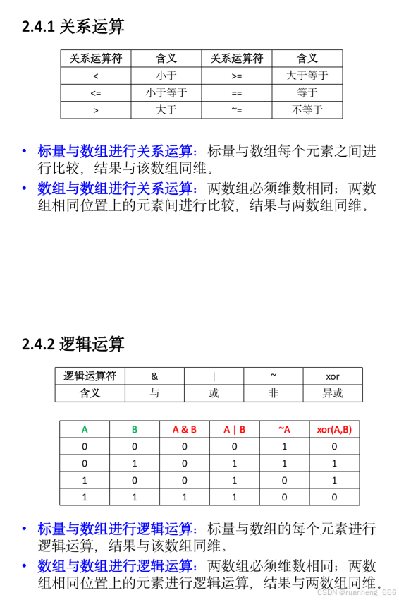 - 在程序设计中,经常需要对某些问题做出大/小或真/假的判断,为此,MATLAB设计了关系运算(比大小)、逻辑运算(判真假)和一些相关函数