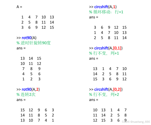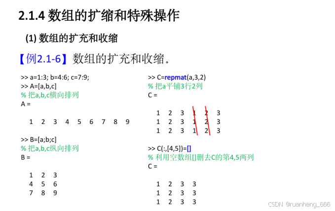 把一个数组横/纵向排列 把一个数组平铺成某行某列 利用空数组删去某个数组的第几行/列