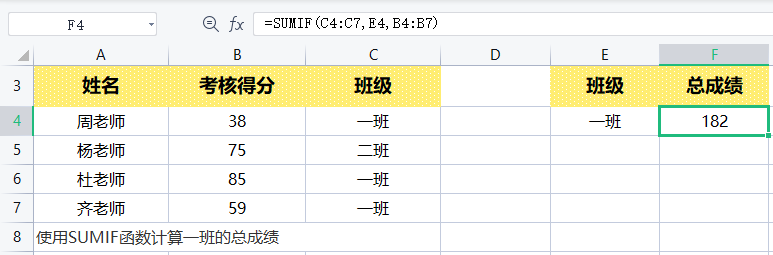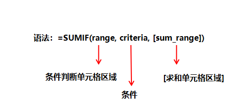 =SUMIF(条件判断单元格区域, 条件, [求和单元格区域])