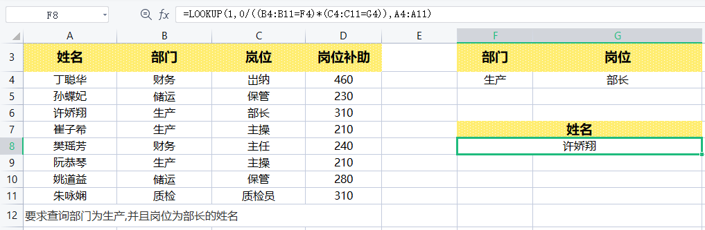 =LOOKUP(1,0/((条件区域1=条件1)*(条件区域2=条件2)),查询区域)