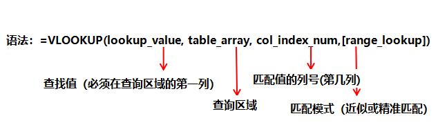 =VLOOKUP(查找值, 查询单元格区域, 列数, [匹配模式])