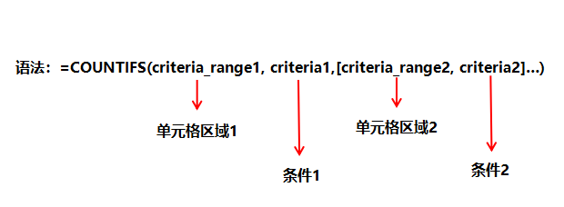 =COUNTIFS(条件区域1, 条件1, [条件区域2, 条件2]…)