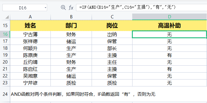 =IF(AND(B16="生产",C16="主操"),"有","无")