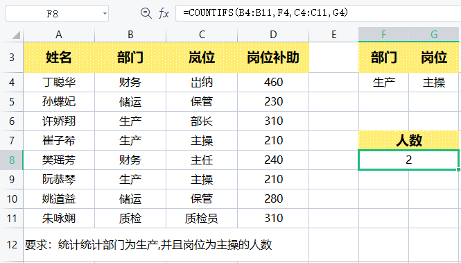 =COUNTIFS(B4:B11,F4,C4:C11,G4)