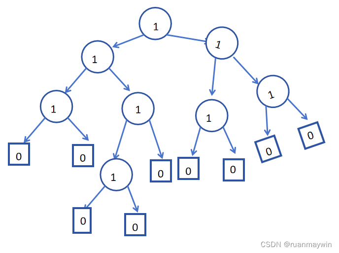 输入0或1组成的字符串,如11100110001100100,用先序遍历创建一个二叉树,其中1表示结点存在,0表示结点不存在。