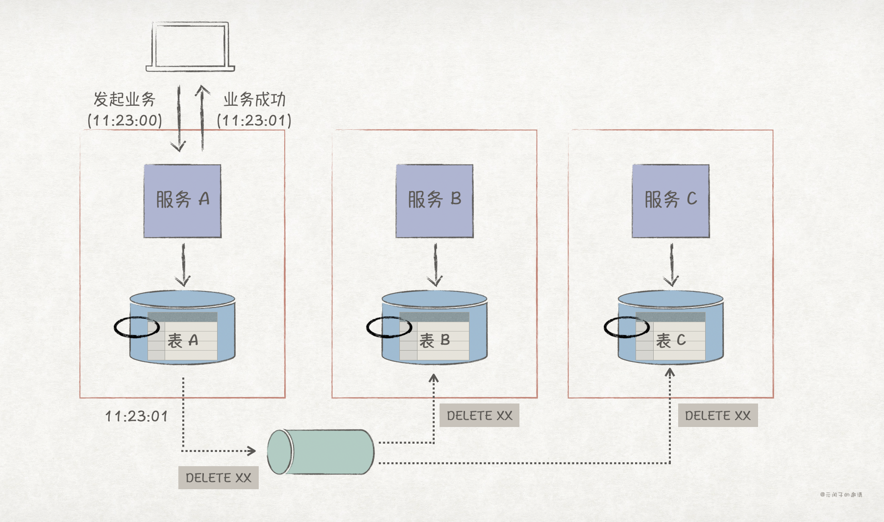 1、后台服务数据同步。该方法会专门独立出一个后台数据同步服务,通过离线同步达成最终一致性。这里的关键点是后台服务需要知道哪些数据需要同步,可以通过数据库触发器、事件流等技术手段实现。