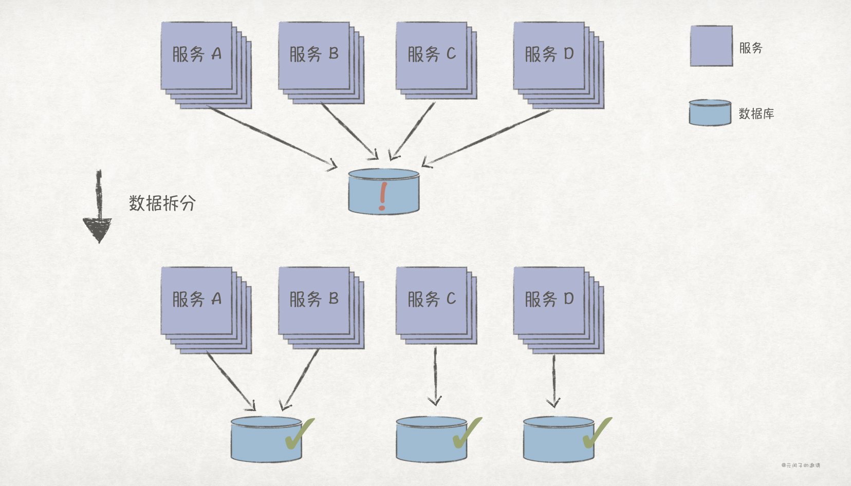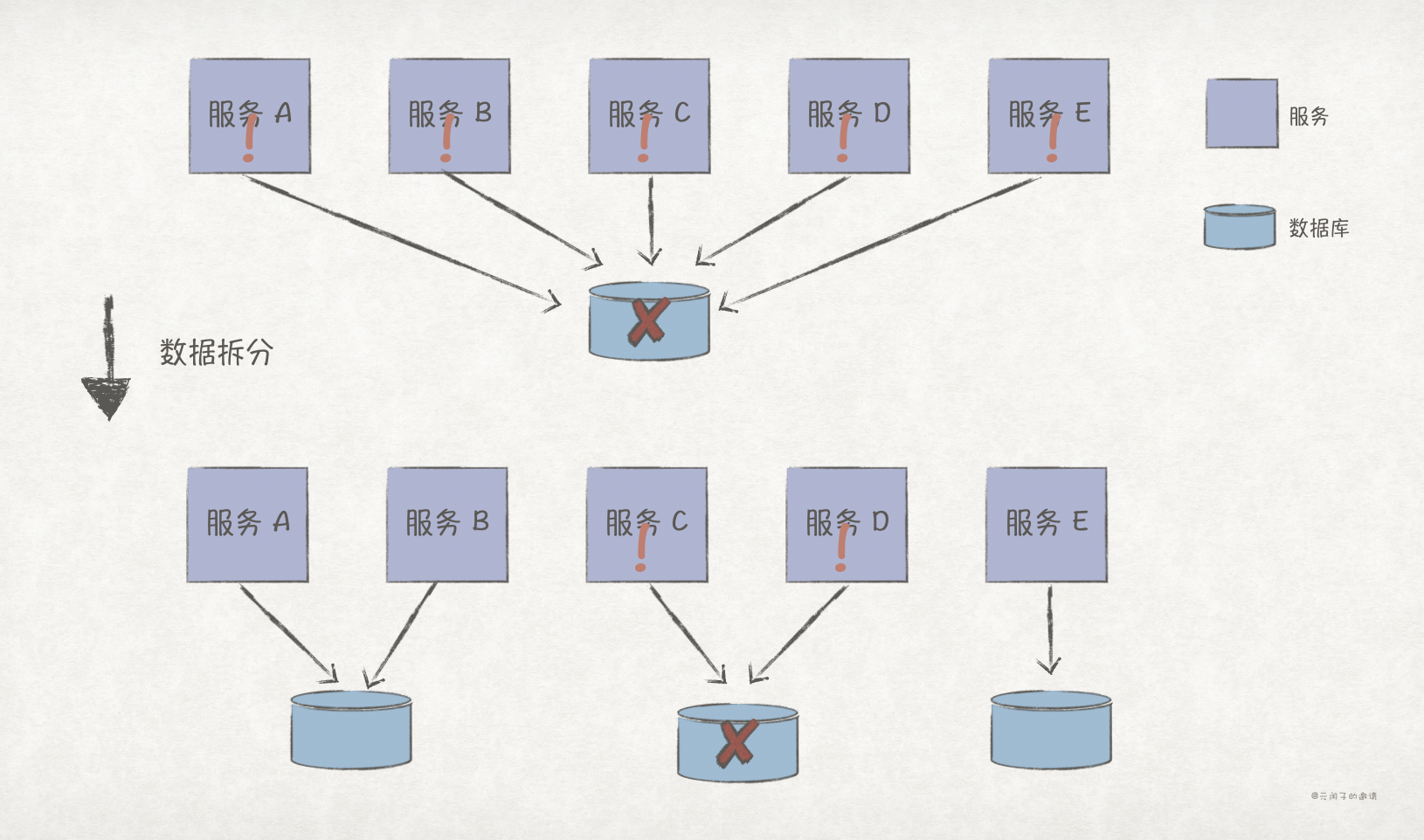| 服务间解耦。 | 所有的数据都因为后台同步服务而产生了耦合。 |