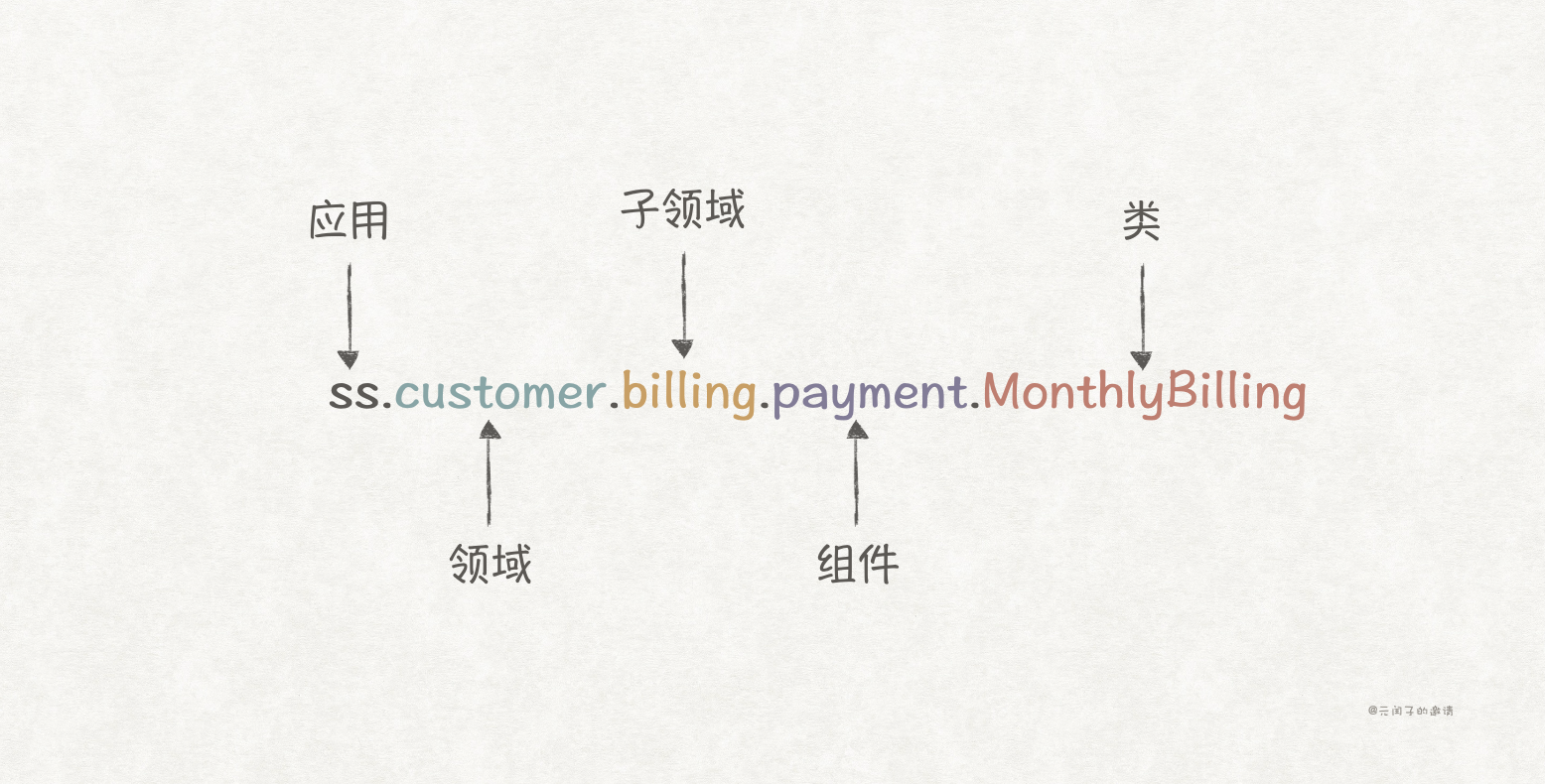 在实践该模式前,先了解命名空间的组成,以 ss.customer.billing.payment.MonthlyBilling 为例,它的各层级含义如下: