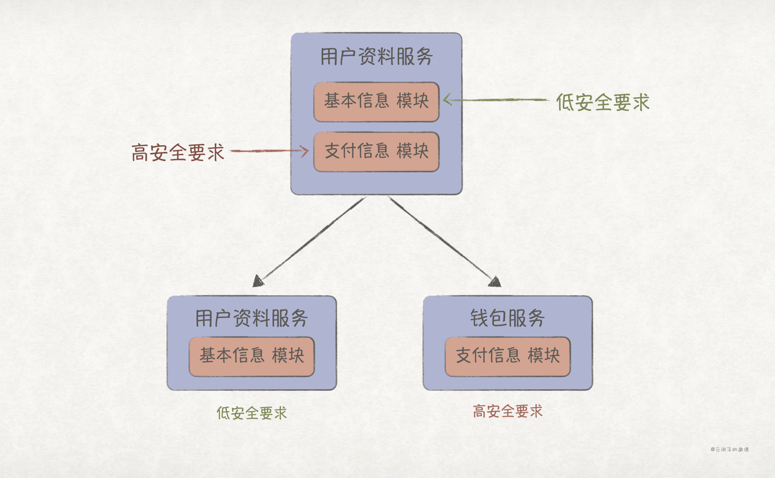 - 评估改变它们的耦合关系对系统的影响,并对影响进行权衡分析,得出最终的拆分方式。