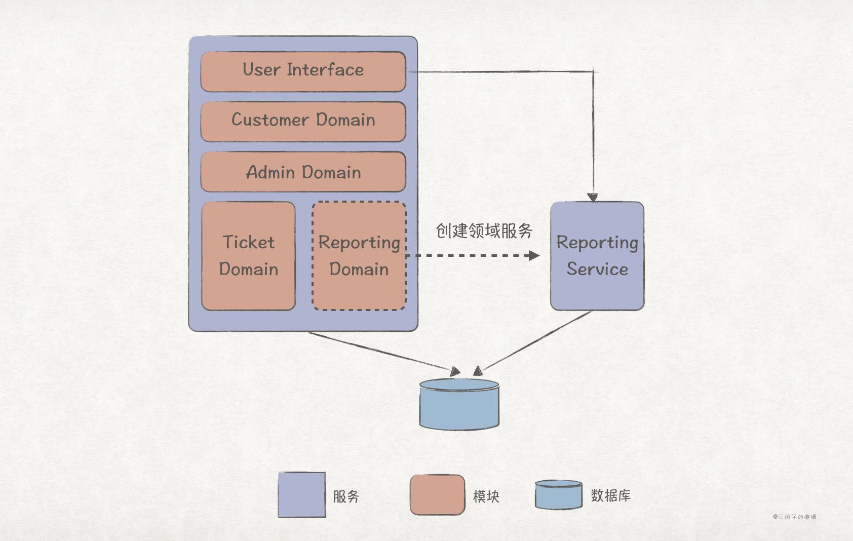 比如下述的例子,Customer Notification、Ticket Notify 和 Survey Notify 三个组件都属于通知领域,那么我们就可以把它们整合到一起。