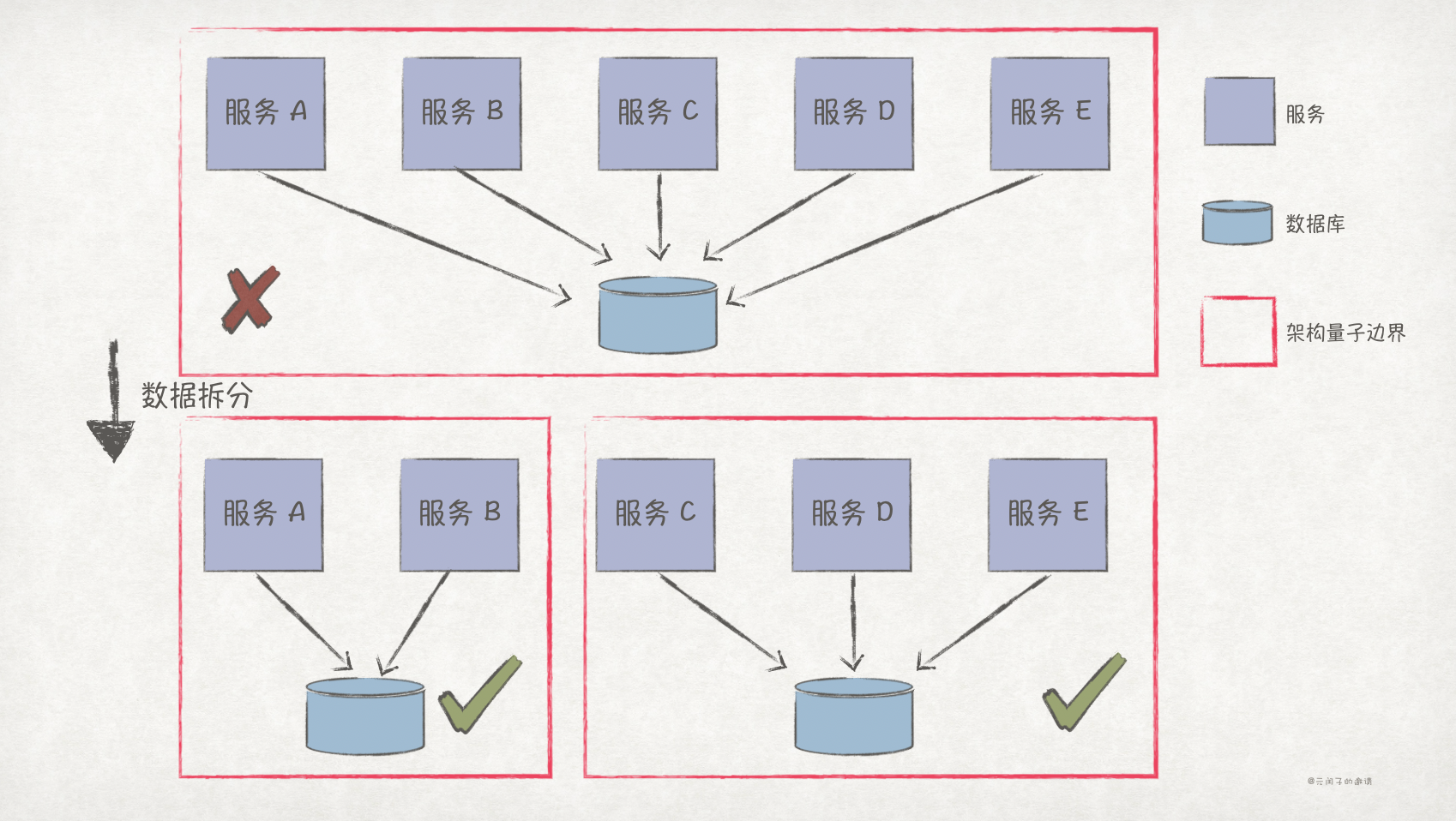 作者提出了架构量子(Architecture Quantum)的概念。量子在物理学中指参与基本相互作用的任何物理实体的最小量;架构量子则是指在软件架构中能够独立部署的最小集合。书中定义如下: