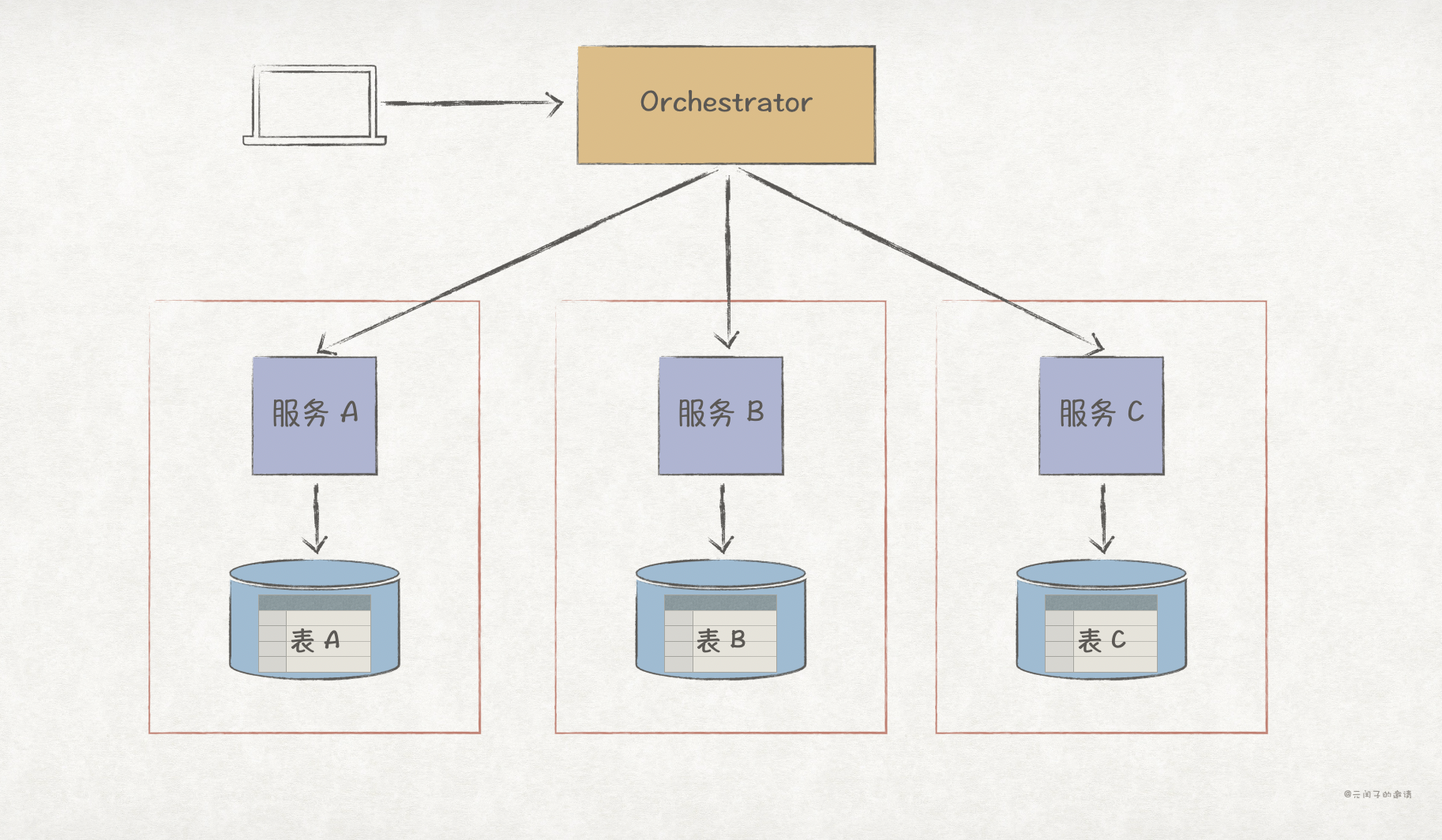 | Fantasy Fiction Saga | 异步 | 强一致性 | Orchestration 编排 |