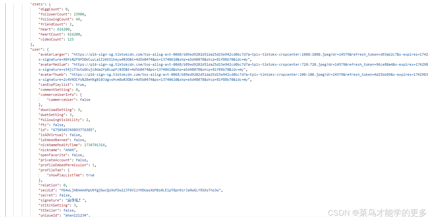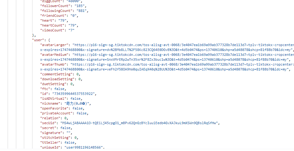 参数 说明 token 鉴权参数 sec_uid 用户id,从用户信息接口中可以获取 cursor 翻页参数从上一页获取,默认为空返回第一页数据 -