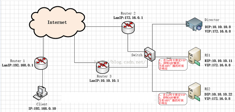 当一个客户端向VIP发出一个连接请求时,此请求必须要连接至Director的VIP,而不能是RealServer的,因为LVS的主要目标就是要Director负责