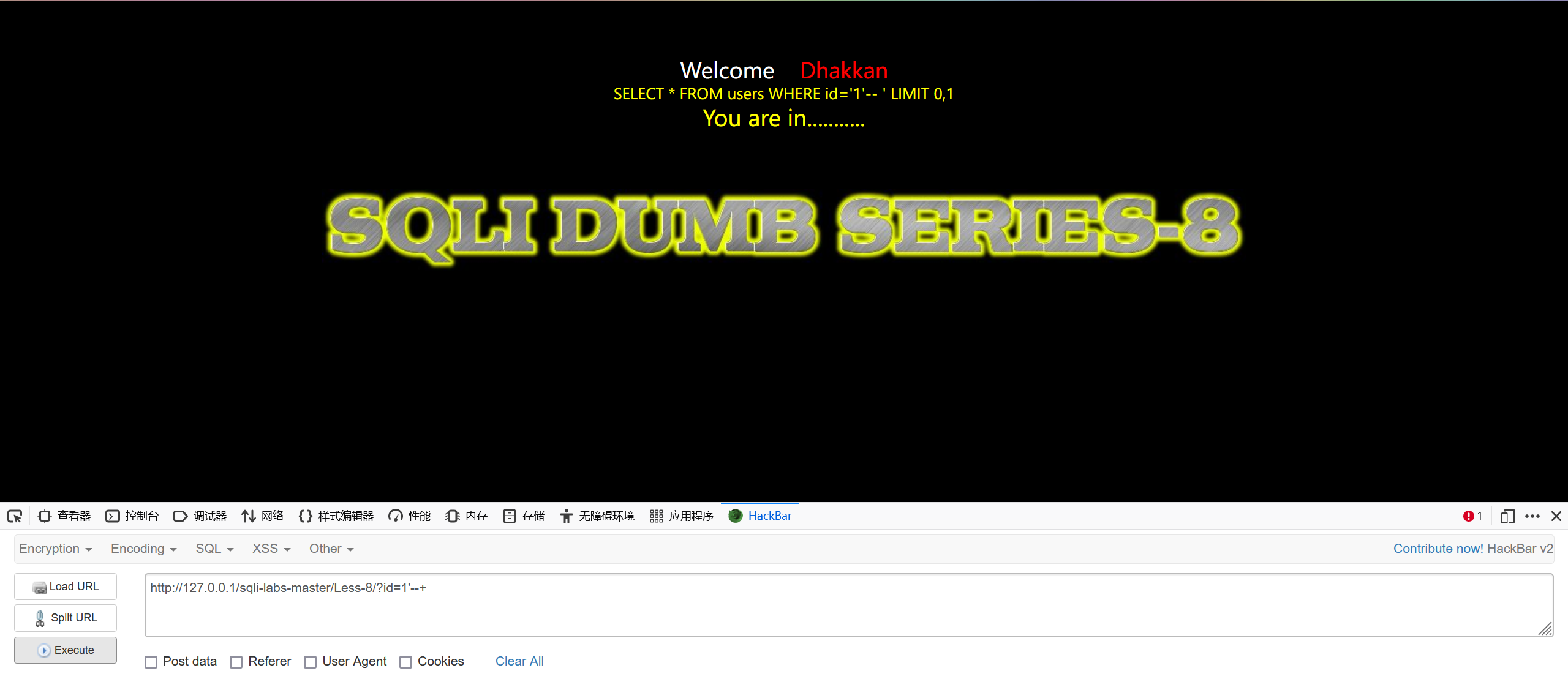 输入http://127.0.0.1/sqli-labs-master/Less-9/?id=1'--+时发现不管输入什么都会显示出You are in......
