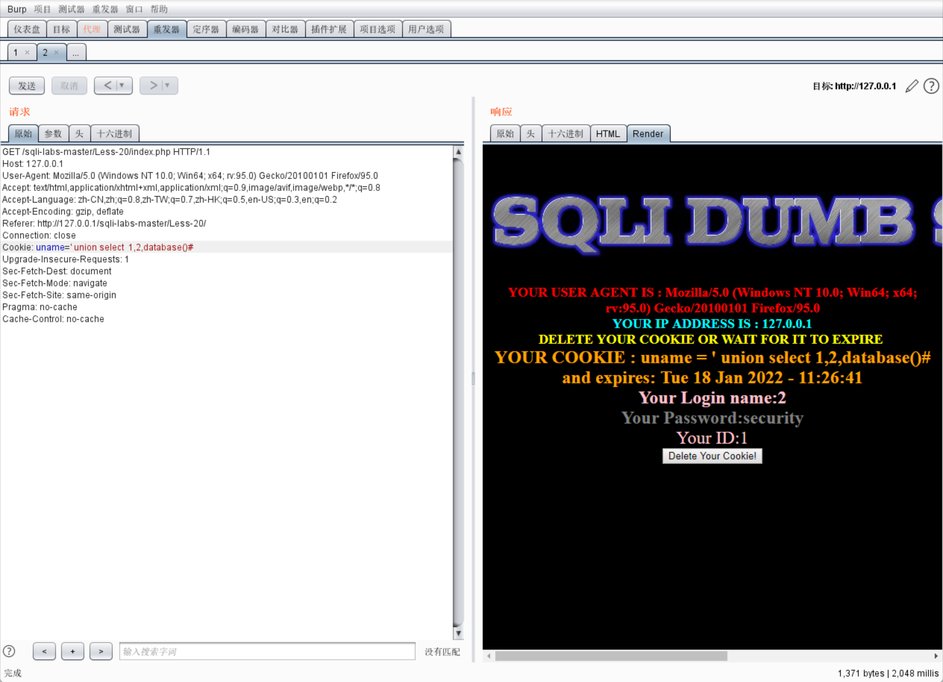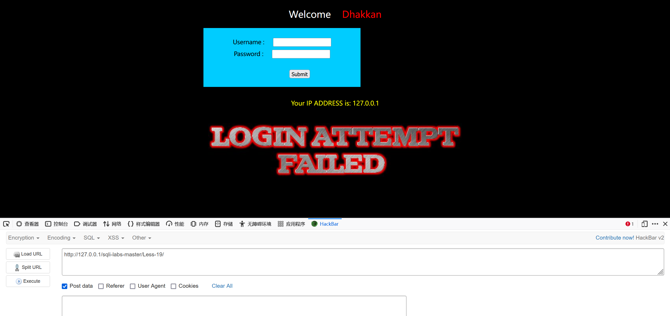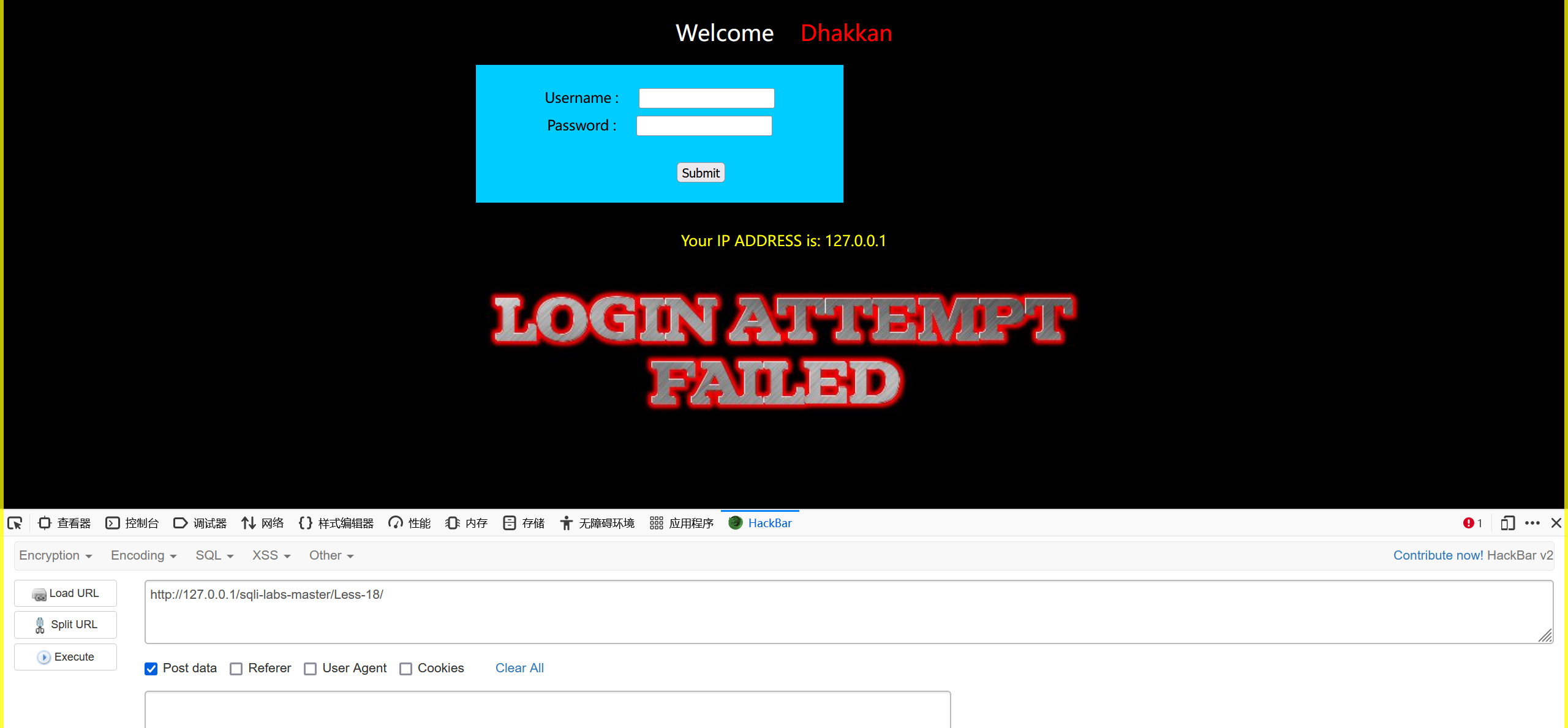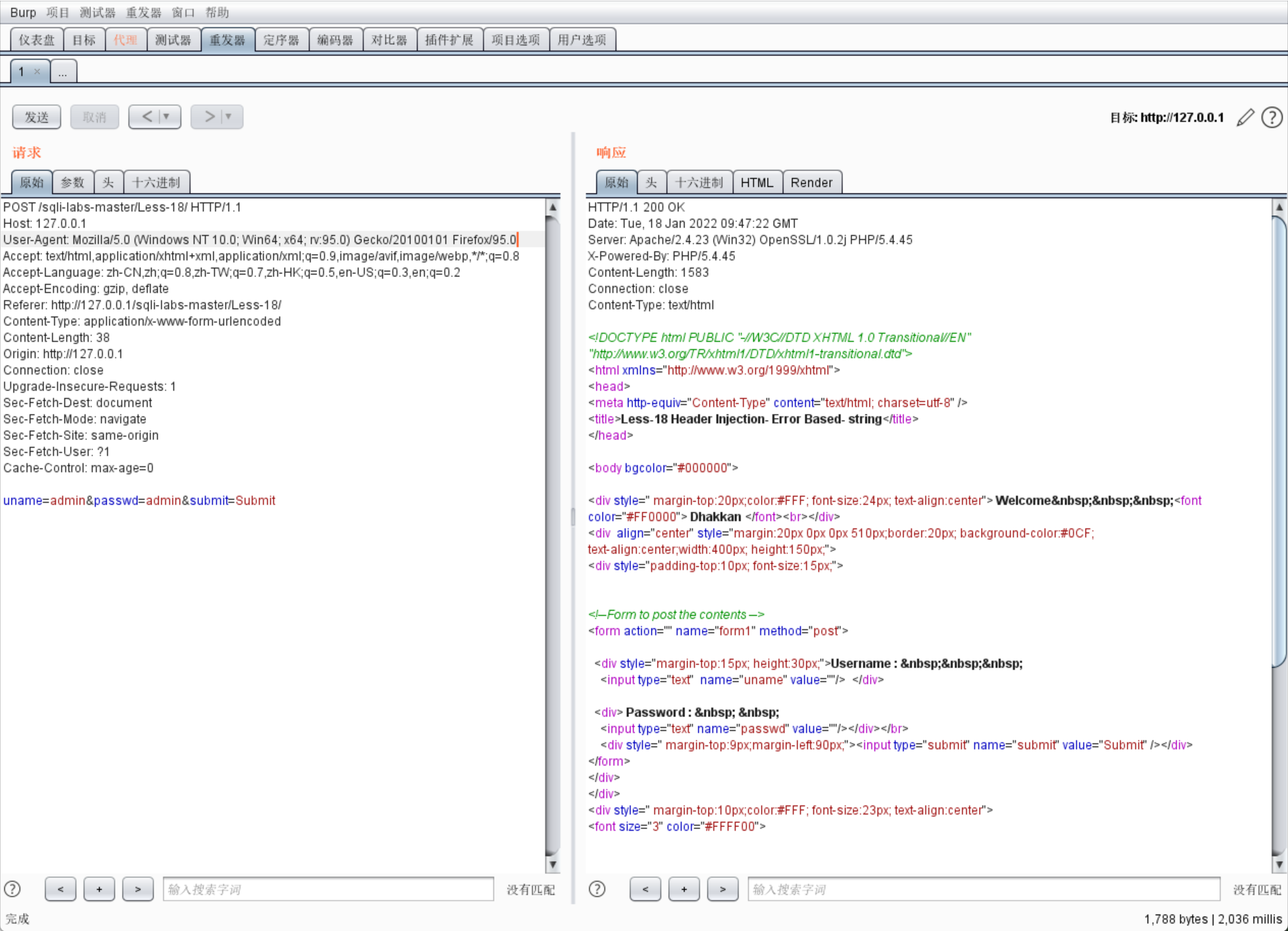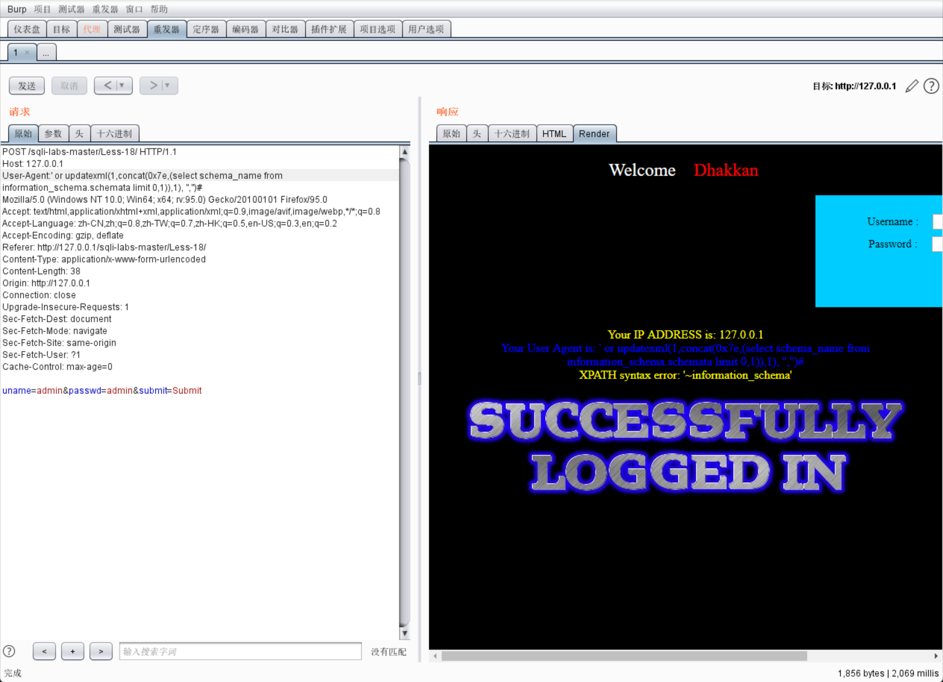 经测试用户名和密码处有转义无法进行注入,需用burpsuite进行抓包,进行Harder注入.