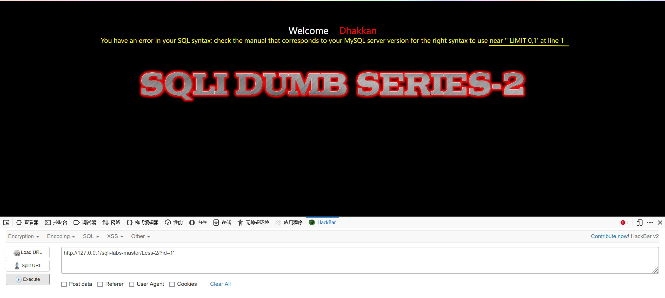 同第一关输入http://127.0.0.1/sqli-labs-master/Less-2/?id=1'