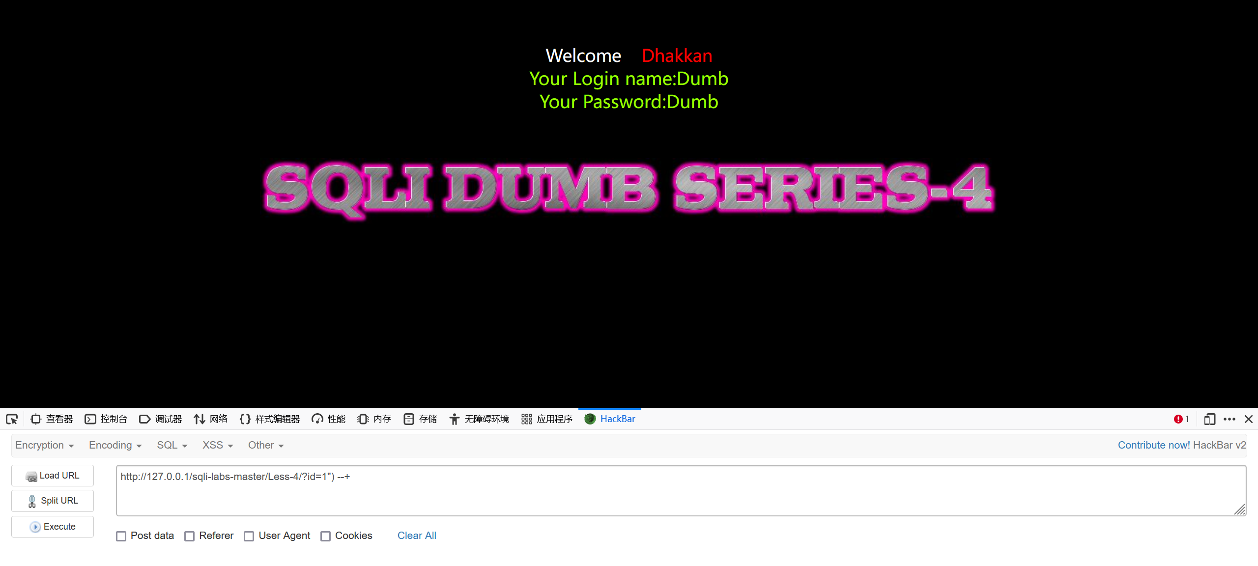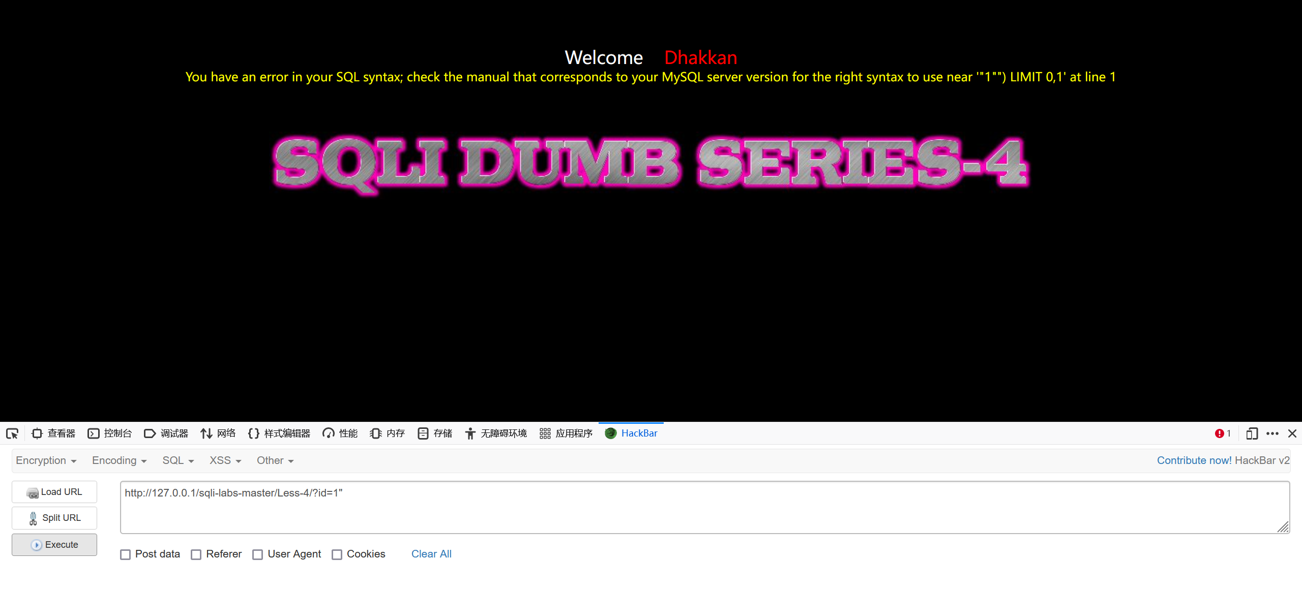 同前面输入http://127.0.0.1/sqli-labs-master/Less-4/?id=1‘