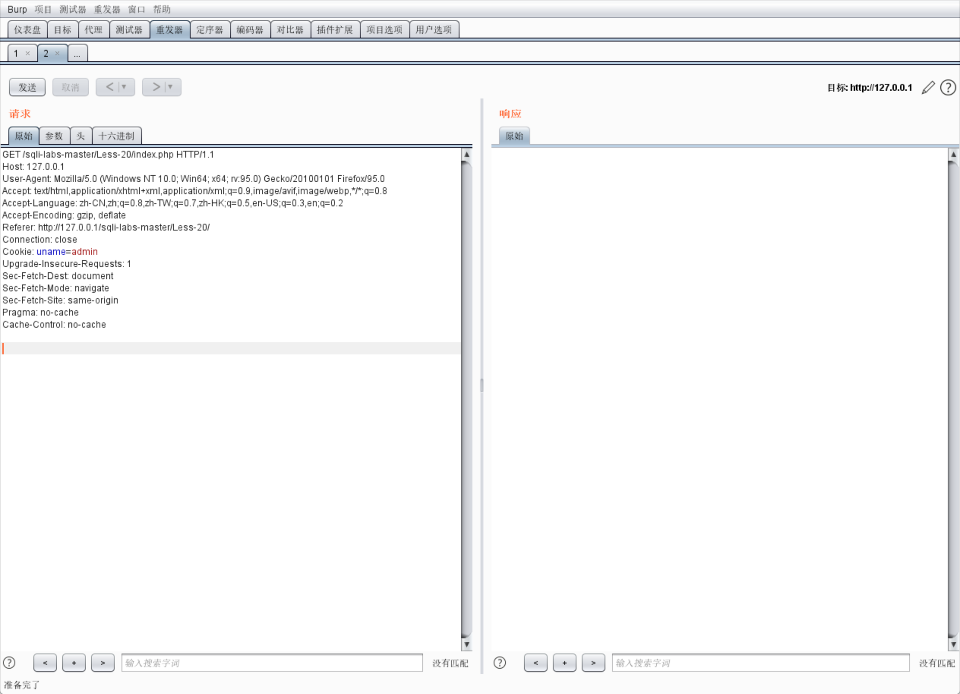 输入http://127.0.0.1/sqli-labs-master/Less-9/?id=1' and sleep(5)--+