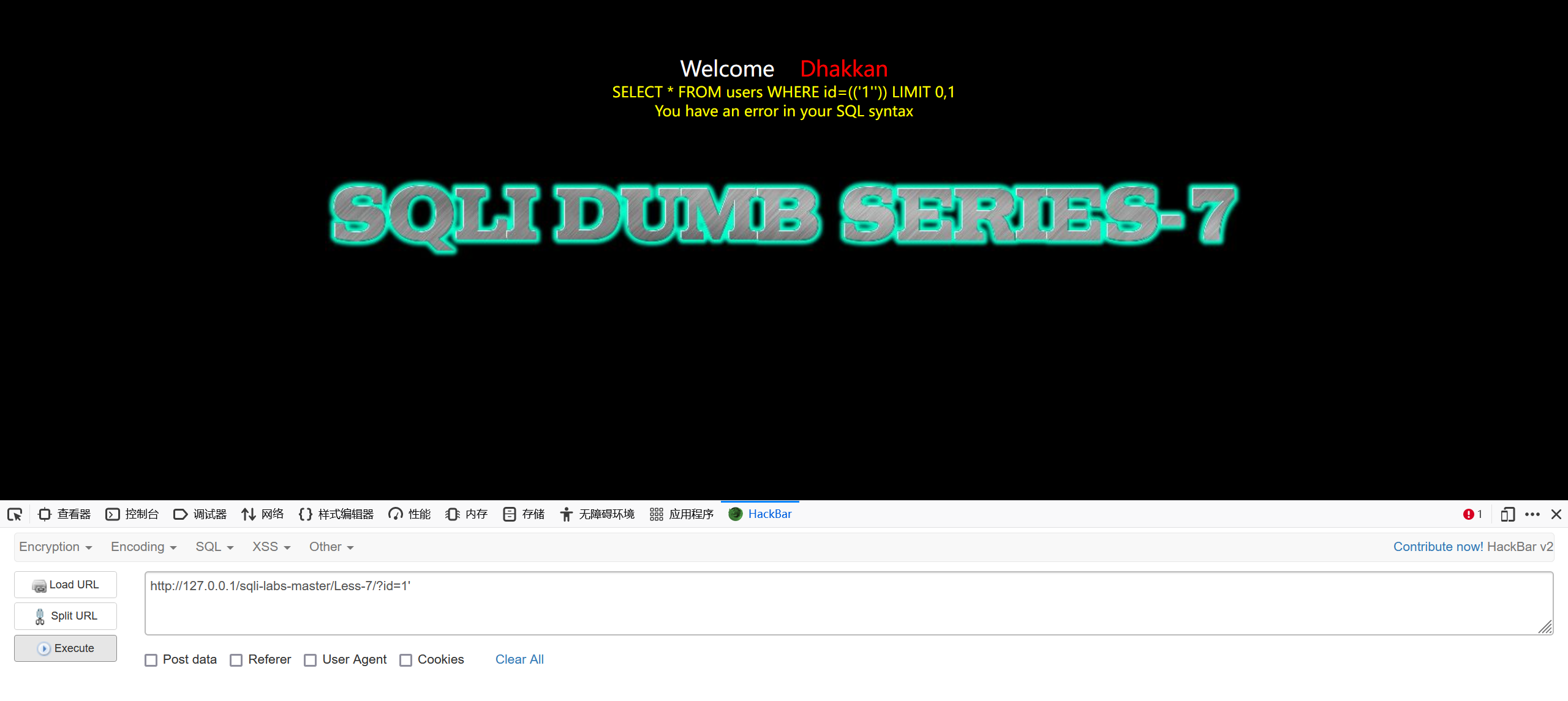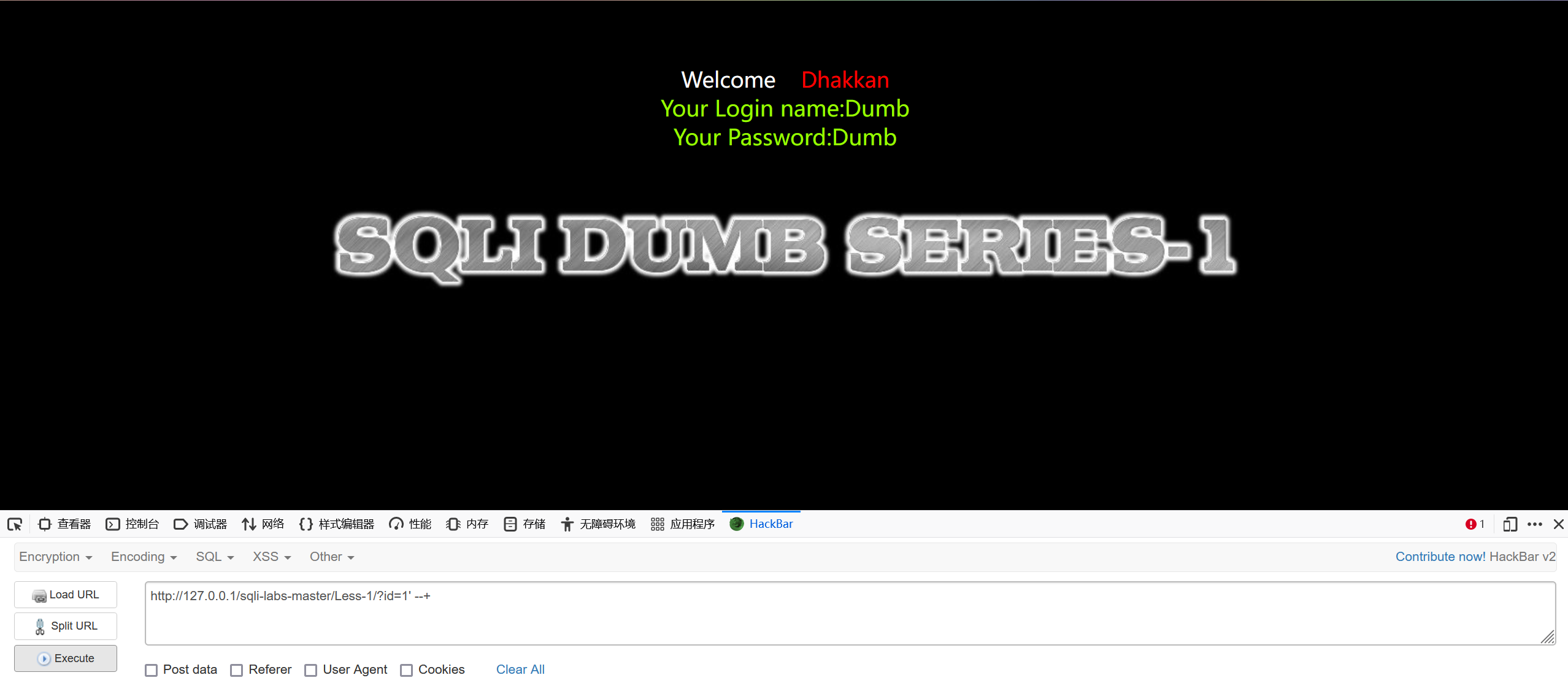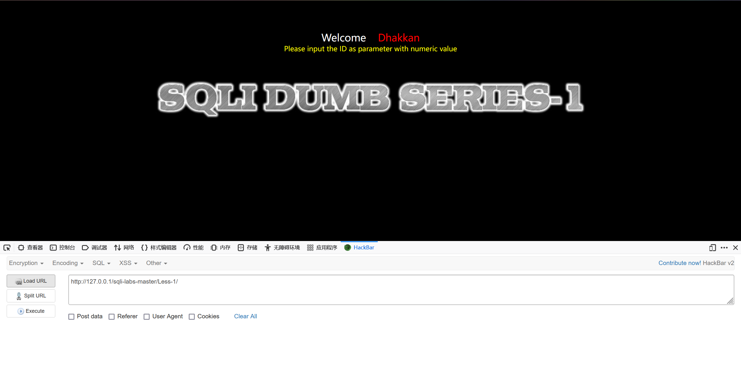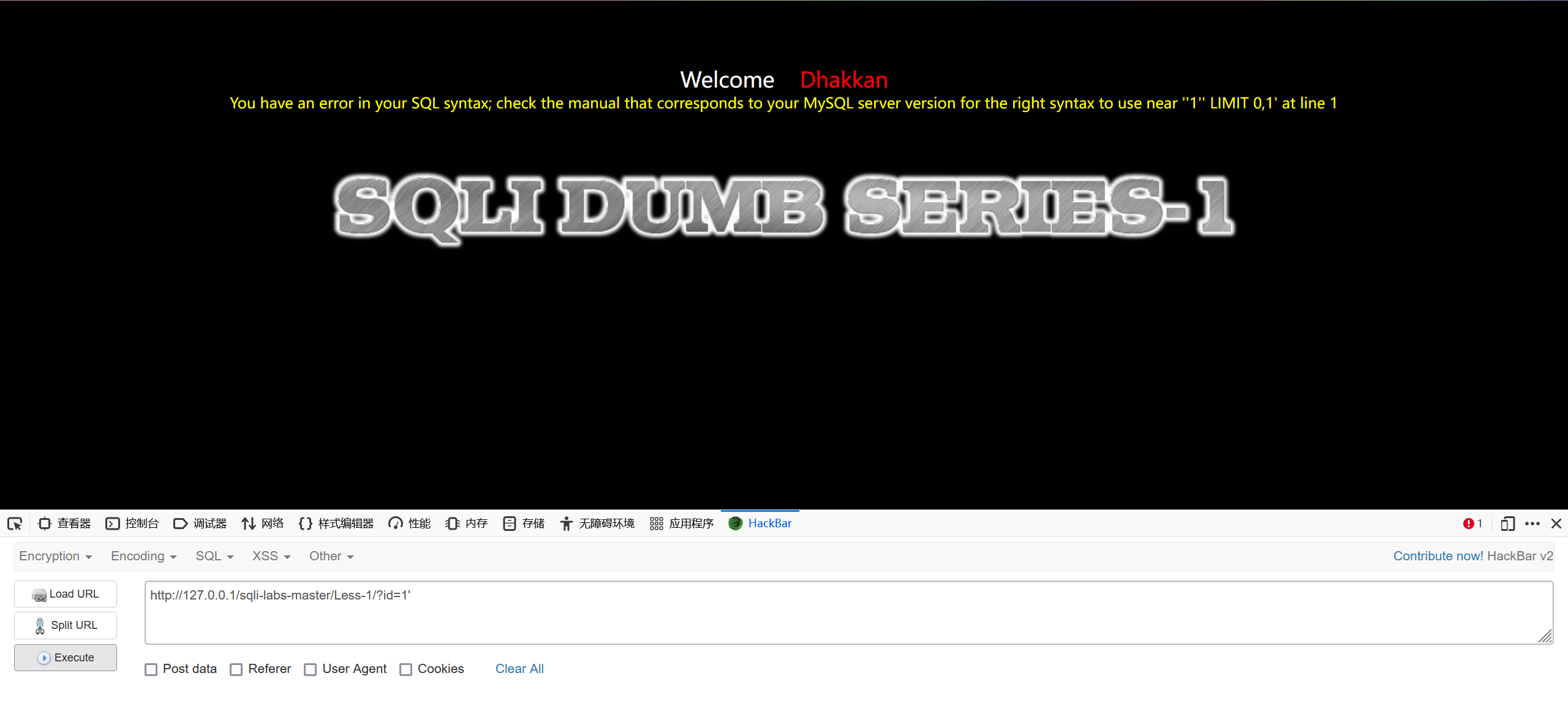 1.根据提示,输入http://127.0.0.1/sqli/Less-1/?id=1'查看注入:
