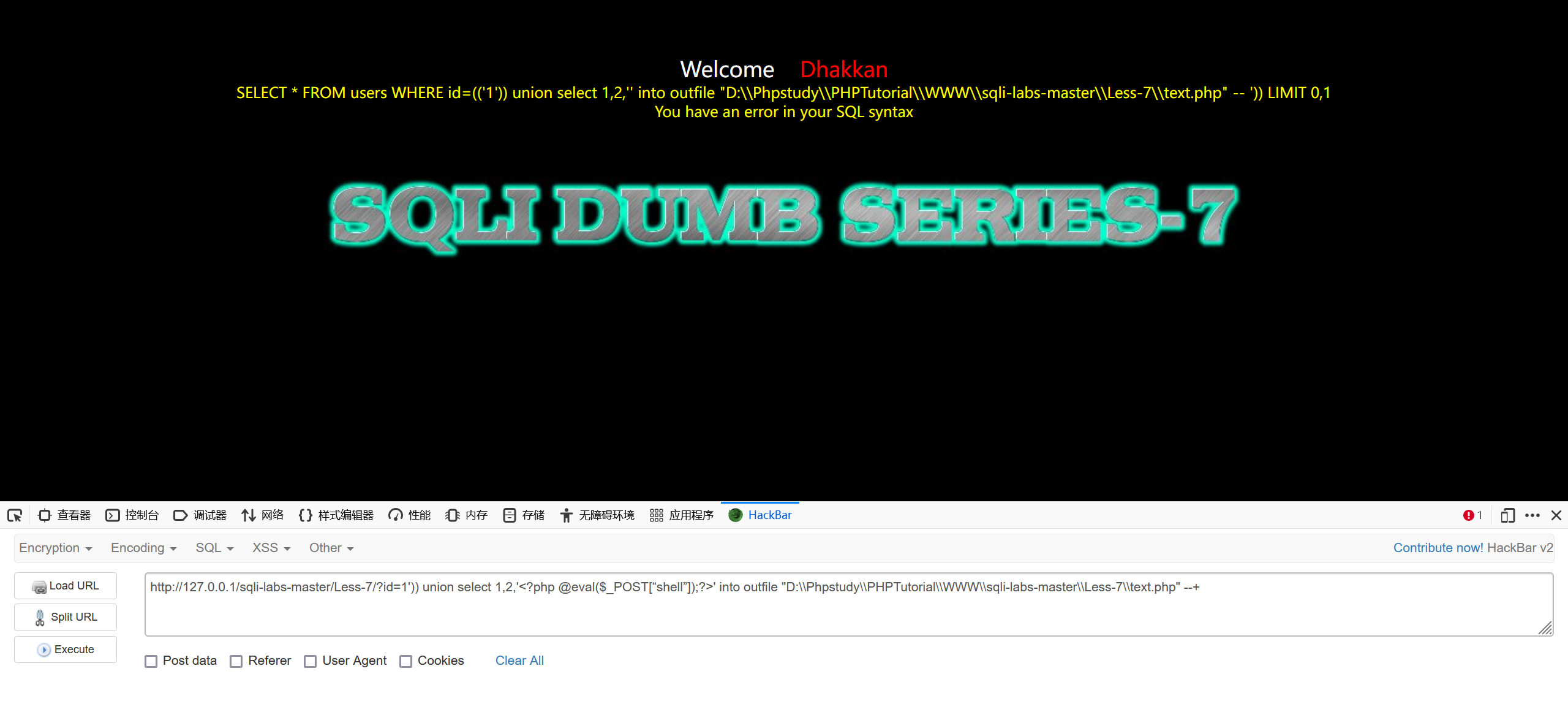 继续测试,输入:http://127.0.0.1/sqli-labs-master/Less-4/?id=1"