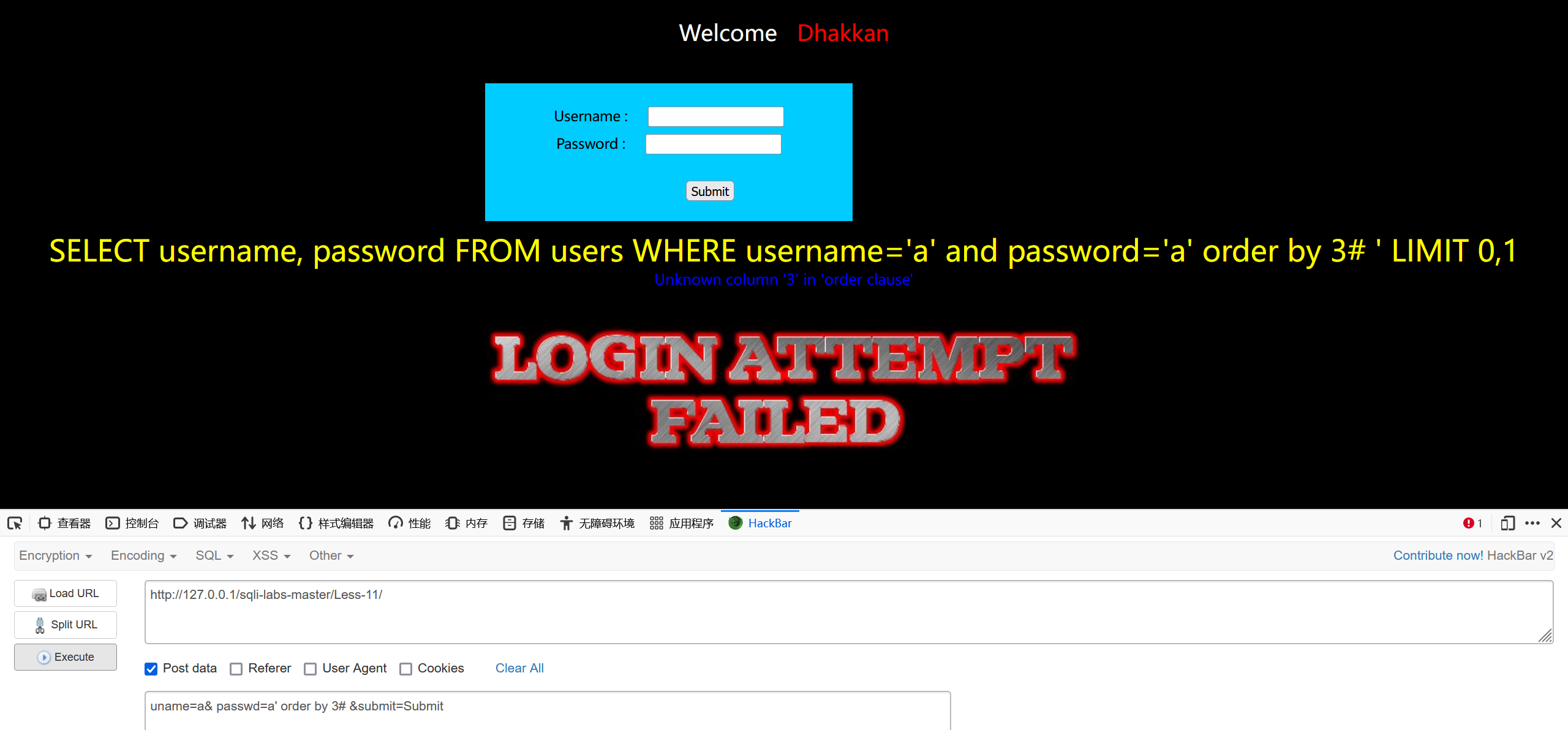 或用 uname=a&passwd=a' order by 2# &submit=Submit