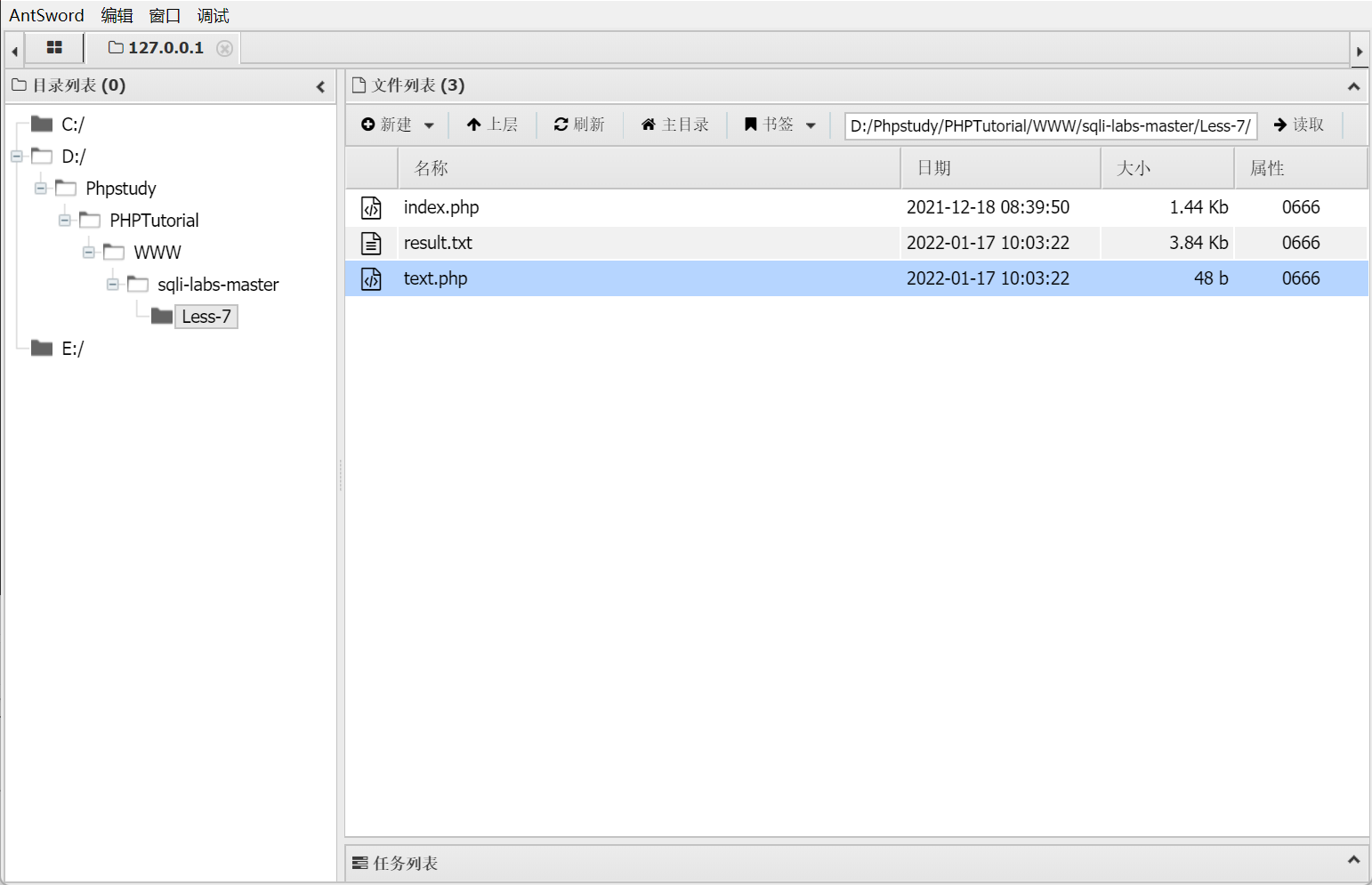 通过注入测试本关注入点为http://127.0.0.1/sqli/Less-10/?id=1“