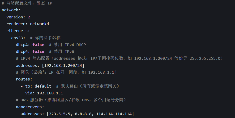 vim /etc/netplan/00-installer-config.yaml #打开配置文件