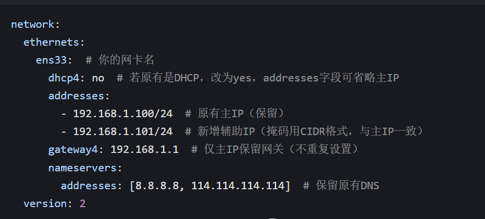 BOOTPROTO=static #辅助IP建议静态(避免DHCP冲突)