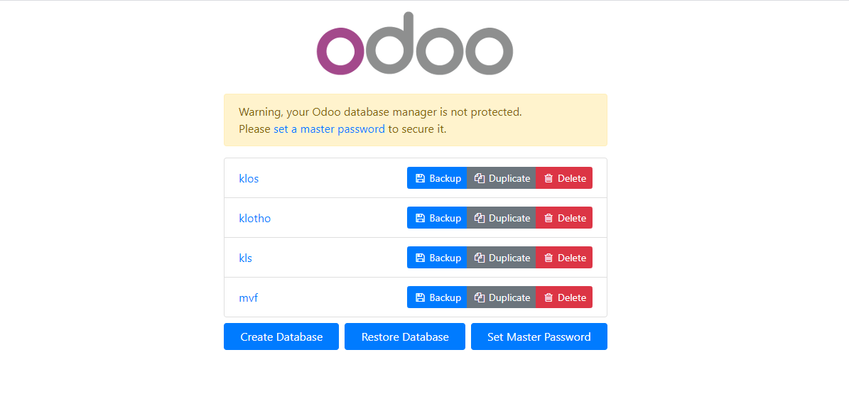 odoo自带数据库管理界面,对于非技术人员来说,进行数据库的备份与还原相对友好了很多。
