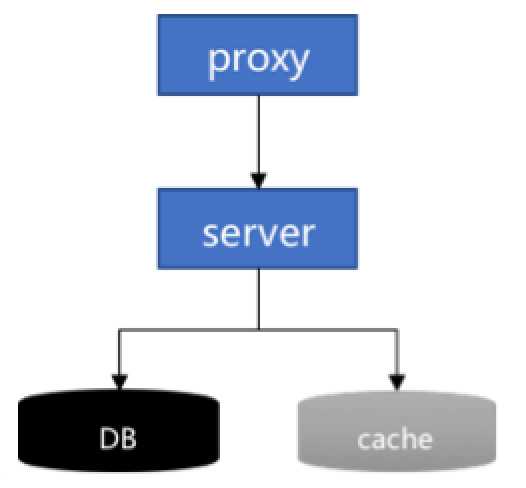 该系统由接入层、逻辑服务层、存储层与缓存构成。Proxy 处理请求接入,Server 承载主要的业务逻辑,Cache 用于缓存库存数量、DB 则用于数据持久化。